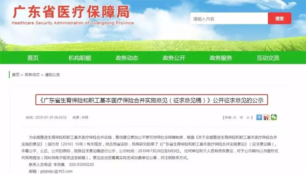 ![]() 就在國家政策發(fā)布不久,各地區(qū)紛紛響應(yīng),出臺(tái)相應(yīng)措施。 7月29日,廣東省醫(yī)療保障局發(fā)布《廣東省生育保險(xiǎn)和職工醫(yī)療保險(xiǎn)合并實(shí)施意見(征求意見稿)公開征求意見的公示》,公示指出:2019年年底廣東省將實(shí)現(xiàn),生育保險(xiǎn)和基本醫(yī)療保險(xiǎn)合并實(shí)施。