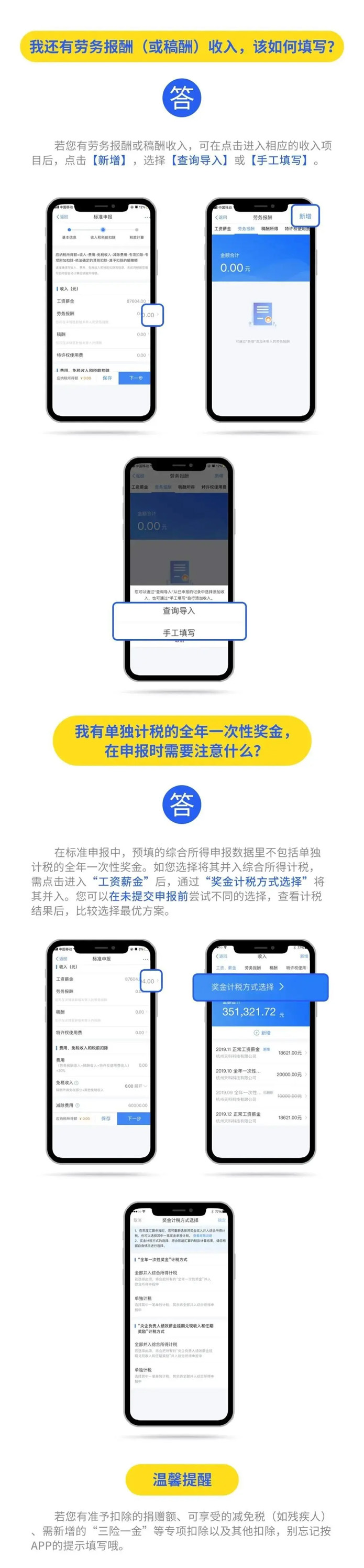 這幾天你有在“個人所得稅”app上操作退稅了嗎? 從4月1日起,全國各地已經全面開放匯算清繳辦理渠道,包括“個人所得稅”手機APP端和網頁Web端辦理通道。 不少小伙伴紛紛曬出了自己個稅退稅的金額,從幾十元到幾千元不等,有人甚至收到了6000多元的退稅。 網友直呼:“退稅真香”、“天降橫財,夠吃頓火鍋了”。 另外,要注意的是,不是所有人都能退稅,有的小伙伴可能只能退0元,還有的小伙伴可能還要補稅哦。 所以,一起來看下你是需要退稅還是補稅吧~ 首先我們來了解下什么是年度匯算,為什么會有退稅? 年度匯算簡單來說就是“合并全年收入,按年計算稅款”,然后多退少補。 個稅改革后,個稅的計算方法發生了改變,即將工資薪金、勞務報酬、稿酬、特許權使用費4項所得合并為“綜合所得”,按年計算個稅。 具體計算公式如下: 2019年度匯算應退或應補稅額=[(綜合所得收入額-60000元-“三險一金”等專項扣除-子女教育等專項附加扣除-依法確定的其他扣除-捐贈)×適用稅率-速算扣除數]-2019年已預繳稅額個人所得稅稅率表。 以下8種情況可退稅 有小伙伴說公式太復雜看不懂,自己也算不出來自己能是不是能退稅,能退多少稅。 沒關系,你只要記住,只要因為平時扣除不足或未申報扣除等原因導致多預繳了稅款,無論收入高低,無論退稅額多少,都可以申請退稅。 實踐中,一般有7種情況可能產生退稅: 1、2019年度綜合所得年收入額不足6萬元,但平時預繳過個人所得稅的。 舉個例子: 小明1月領取工資1萬元、個人繳付“三險一金”2000元,假設沒有專項附加扣除,預繳個稅90元;其他月份每月工資4000元,無須預繳個稅。全年看,因納稅人年收入額不足6萬元無須繳稅,因此預繳的90元稅款可以申請退還。 2、2019年度有符合享受條件的專項附加扣除,但預繳稅款時沒有申報扣除的。 舉個例子: 小王每月工資1萬元、個人繳付“三險一金”2000元,有兩個上小學的孩子,按規定可以每月享受2000元(全年24000元)的子女教育專項附加扣除。但因其在預繳環節未填報,使得計算個稅時未減除子女教育專項附加扣除,全年預繳個稅1080元。其在年度匯算時填報了相關信息后可補充扣除24000元,扣除后全年應納個稅360元,按規定其可以申請退稅720元。 3、因年中就業、退職或者部分月份沒有收入等原因,減除費用6萬元、“三險一金”等專項扣除、子女教育等專項附加扣除、企業(職業)年金以及商業健康保險、稅收遞延型養老保險等扣除不充分的。 舉個例子:老李于2019年8月底退休,退休前每月工資1萬元、個人繳付“三險一金”2000元,退休后領取基本養老金。 假設沒有專項附加扣除,1-8月預繳個稅720元;后4個月基本養老金按規定免征個稅。全年看,該納稅人僅扣除了4萬元減除費用(8×5000元/月),未充分扣除6萬元減除費用。年度匯算足額扣除后,該納稅人可申請退稅600元。 4、沒有任職受雇單位,僅取得勞務報酬、稿酬、特許權使用費所得,需要通過年度匯算辦理各種稅前扣除的。 5、納稅人取得勞務報酬、稿酬、特許權使用費所得,年度中間適用的預扣率高于全年綜合所得年適用稅率的。 舉個例子: 小趙每月固定一處取得勞務報酬1萬元,適用20%預扣率后預繳個稅1600元,全年19200元;全年算賬,全年勞務報酬12萬元,減除6萬元費用(不考慮其他扣除)后,適用3%的綜合所得稅率,全年應納稅款1080元。因此,可申請18120元退稅。 6、預繳稅款時,未申報享受或者未足額享受綜合所得稅收優惠的,如殘疾人減征個人所得稅優惠等。 7、有符合條件的公益慈善事業捐贈支出,但預繳稅款時未辦理扣除的。 8、年終獎稅率高于綜合所得稅率 且年終獎全額并入綜合所得后不會提高綜合所得稅率級數的,在個稅匯算清繳時年終獎全年一次性獎金計稅方式中選擇全部并入綜合所得,也有可能會發現應繳納的稅金降低,從而獲得退稅。 當然,不是所有人都能退稅,還有人需要補稅。 綜合所得年收入超過12萬元且年度匯算補稅金額在400元以上的納稅人,才需要辦理年度匯算并補稅。 匯算清繳的操作不能省 還有的小伙伴來問,個稅問題太復雜,自己可不可以不去管它,小智很認真嚴肅地回答你:不可以!!! ■ 退稅可以放棄 國家稅務總局表示,如果你是屬于需要退稅的,是否辦理年度匯算申請退稅是你的權利,無需承擔任何責任。 ■ 補稅必須辦如果你是屬于應當補稅的,辦理年度匯算是你的義務 根據稅收征管法第六十二條,納稅人未按照規定期限辦理納稅申報和報送納稅資料的,由稅務機關責令限期改正,可以處2000元以下的罰款; 情節嚴重的,可以處2000元以上1萬元以下的罰款,并追繳稅款、加征滯納金。滯納金則從超過繳納期限之日起,按日加收滯納稅款萬分之五。 也就是說,年度匯算申報后,如果你需要補稅,請在2020年6月30日前補繳稅款,否則將面臨每日萬分之五加收滯納金。 附上個稅APP年度匯算操作指南 |
