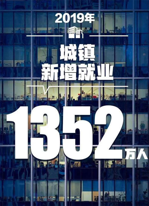 2019年就業數據 2019年,我國城鎮新增就業1352萬人,調查失業率在5.3%以下。