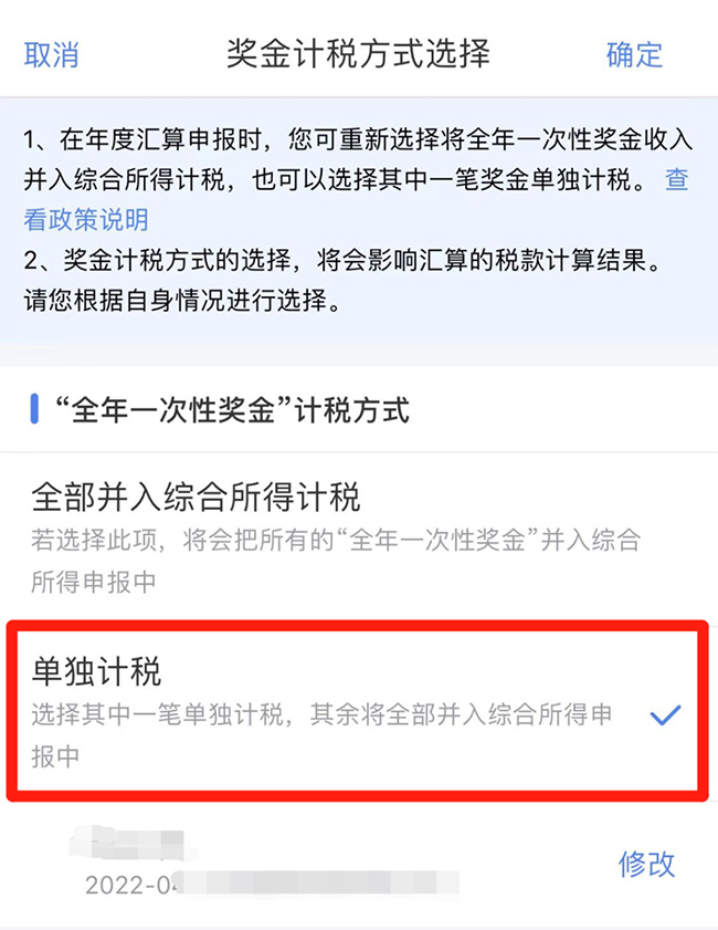 點開之后,你面臨兩個選擇:選擇單獨計稅,或選擇并入綜合所得計稅。 這兩種形式,對于很多人來說,差異巨大,也是讓很多人可以實現補稅變退稅的主要原因。