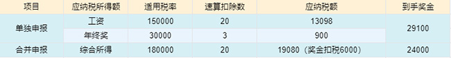 為了方便大家理解,可以直接看這個例子: A公司小明,2022年工資扣除三險一金、免征額等后,應納稅所得額15萬元,年終獎3萬元。