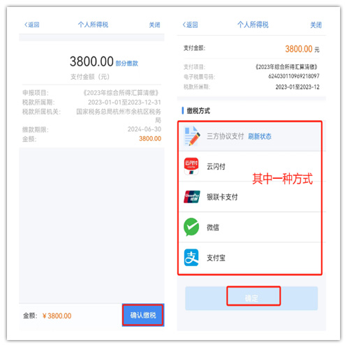 3月1日,2023年個人所得稅匯算清繳正式啟動。不少網友曬出自己匯算賬單:退稅金額從幾十元、幾百元、上千元乃至上萬元不等;補稅金額也是幾百元、幾千元甚至上萬元。 根據中國國際稅收研究會課題組研究,2019年和2020年辦理個稅匯算清繳的,差不多近一半享受了退稅,兩年平均退稅金額約581元。因此對多數人來說,大概率會獲得退稅。而由于400元以內補稅金額可以豁免,不用補繳,因此不退不補人數占參加匯算清繳申報人數比重超過40%,真正需要補稅人數占比在3%左右哦~ 這次個稅匯算辦理時間為2024年3月1日至6月30日,納稅人如需在3月1日至20日之間辦理匯算,可在2月21至3月20日(每日6:00—22:00)通過個稅APP預約。3月21日至6月30日,無需預約,可隨時辦理。 政策要點有哪些?具體怎么辦?一起了解一下吧↓ 如何辦理退、補稅? 怎么計算需要補稅還是退稅?先來看一下具體的計算公式: 應退或應補稅額=[(綜合所得收入額-60000元-“三險一金”等專項扣除-子女教育等專項附加扣除-依法確定的其他扣除-符合條件的公益慈善事業捐贈) x 適用稅率-速算扣除數]-已預繳稅額 辦理退稅? 納稅人申請匯算退稅,應提供在中國境內開設的符合條件的銀行賬戶。稅務機關按規定審核后,按照國庫管理有關規定辦理稅款退庫。納稅人未提供本人有效銀行賬戶,或者提供的信息資料有誤的,稅務機關將通知納稅人更正,納稅人按要求更正后依法辦理退稅。 為方便辦理退稅,2023年綜合所得全年收入額不超過6萬元且已預繳個人所得稅的納稅人,可選擇使用個稅APP或網站提供的簡易申報功能,便捷辦理匯算退稅。 申請2023年度匯算退稅及其他退稅的納稅人,如存在應當辦理2022年及以前年度匯算補稅但未辦理,或者經稅務機關通知2022年及以前年度匯算申報存在疑點但未更正或說明情況的,需在辦理2022年及以前年度匯算申報補稅、更正申報或者說明有關情況后依法申請退稅。 辦理補稅? 納稅人辦理匯算補稅的,可以通過網上銀行、辦稅服務廳POS機刷卡、銀行柜臺、非銀行支付機構等方式繳納。郵寄申報并補稅的,納稅人需通過個稅APP及網站或者主管稅務機關辦稅服務廳及時關注申報進度并繳納稅款。 匯算需補稅的納稅人,匯算期結束后未申報補稅或未足額補稅的,一經發現,稅務機關將依法責令限期改正并向納稅人送達有關稅務文書,對已簽訂《稅務文書電子送達確認書》的,通過個稅APP及網站等渠道進行電子文書送達;對未簽訂《稅務文書電子送達確認書》的,以其他方式送達。同時,稅務機關將依法加收滯納金,并在其個人所得稅《納稅記錄》中予以標注。 納稅人因申報信息填寫錯誤造成匯算多退或少繳稅款的,納稅人主動或經稅務機關提醒后及時改正的,稅務機關可以按照“首違不罰”原則免予處罰。 兩種年終獎個稅計算方法,哪種更有利? 在申報中,辦理個稅匯算面臨全年一次性獎金計稅方式的兩大選擇:全部并入綜合所得計稅和單獨計稅。 單獨計稅,即以全年一次性獎金收入除以12個月得到的數額,按照按月換算后的綜合所得稅率表,確定適用稅率和速算扣除數,單獨計算納稅; 全部并入綜合所得計稅,就是將獎金納入綜合所得收入,按綜合所得超額累進稅率來計稅。 單獨計稅其實是一項優惠政策,去年被延續至2027年底。因此對多數人來說,選擇單獨計稅方式,年終獎可以少繳個稅。但對那些全年工資相對少,年終獎相對多的人來說,可能選擇將年終獎并入綜合所得計稅方式更省稅。 要辨別獎金哪種計稅方法對自己更有利,一個最簡單方法是,在個稅APP中先選擇某一種計稅方式,看看最終匯算后的交稅金額,然后不要確認,返回再選擇另一種計稅方式,比較兩種方式下,哪種稅額小,就選擇哪種。 個稅專項附加扣除 由于2023年國務院將3歲以下嬰幼兒照護、子女教育、贍養老人三項專項附加扣除每個月標準均提高1000元,從而進一步減輕家庭撫養贍養負擔。這也會使得今年個稅匯算清繳中,更多的人將享受這筆退稅紅包。 因此,對于2023年可以享受上述三項附加扣除但未申報個人,可在匯算清繳時補充申報,以充分享受國家稅收優惠。 國家稅務總局近日也發布公告明確,一些項目可在個稅匯算期間填報或補充扣除。一圖帶你了解具體內容↓↓ 個稅匯算清繳具體操作 居民個人2023年度綜合所得年收入額超過6萬元時,可以在3月1日至6月30日內,通過標準申報辦理年度匯算。居民個人取得境外所得的,可到WEB端或辦稅服務廳辦理。 個稅APP標準申報操作步驟來了: 步驟一:開始申報 有預約的,可以在預約時間辦理,進入【個人所得稅APP】首頁,點擊【開始申報】開啟2023個稅匯算清繳。 沒有預約的,先進行預約。 3月1日起,2023年度個稅綜合所得匯算開始。納稅人如需在3月1日至20日之間辦理匯算,可在2月21至3月20日(每日6:00-22:00)通過個稅APP預約。3月21日至6月30日,納稅人無需預約,可以隨時辦理。 步驟二、核對基礎信息、選擇匯繳地 2023年收入額大于6萬元的,系統會默認“標準申報”;如果2023年的收入額未超過6萬元且已預繳稅款,就會進入“簡易申報”流程,確認數據無誤后,提交即可。 步驟三、核對收入和稅前扣除信息 (1)選擇年終獎計算方式 年終獎可以單獨計稅,也可以合并到綜合所得稅中計稅,哪種方式交稅少,選擇有利于自己的方式。 (2)核對收入、扣除信息 (1)核對、完善收入情況 在收入列表,您可分