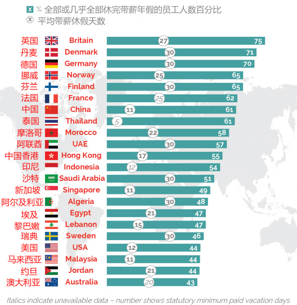中國員工年假平均11天 希臘人比德國人多做671小時 |
